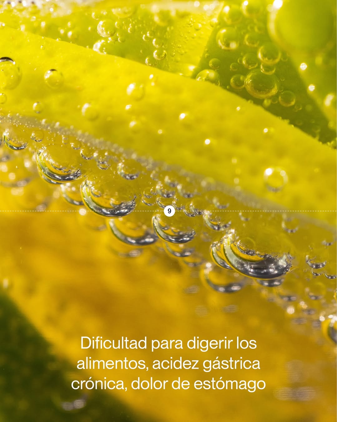 - Dificultad para digerir los alimentos, acidez gástrica crónica y dolor de estómago: Trastornos digestivos funcionales: reflujo, molestias gástricas, SII (diarrea/estreñimiento).
