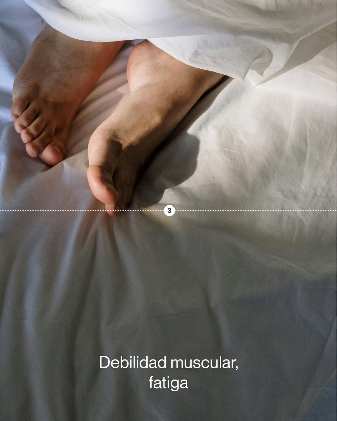 - Debilidad muscular y fatiga: Fatiga diurna con sensación de “aceleración” (wired but tired).